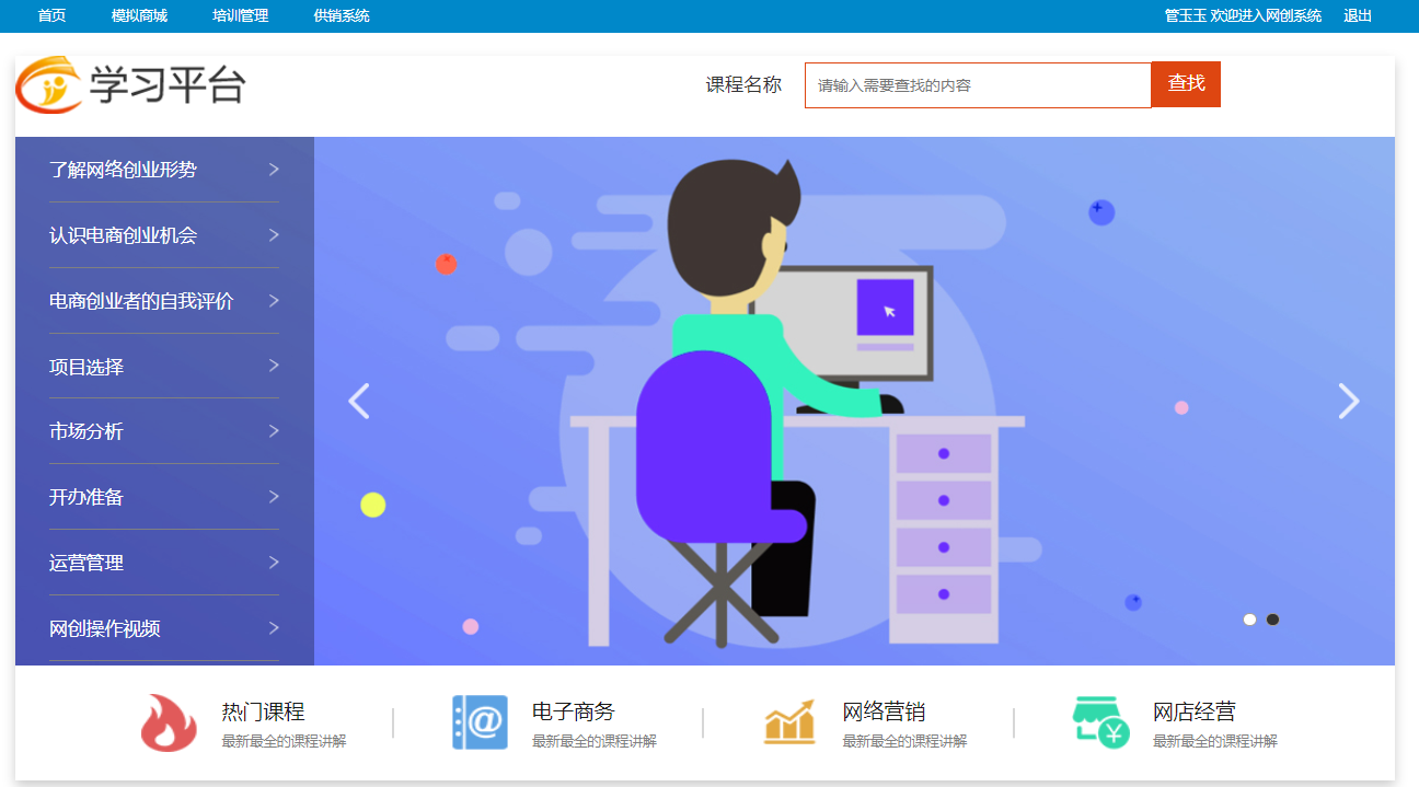 我公司为安徽省各地市人社局及下属开展创业培训的学校(机构)提供网络创业软件、创业模拟软件及在线学习平台,我公司于2019年1月成为安徽省人社厅选用的软件服务商之一,在安徽省16个地市都已开展培训,年培训量达数万余人,赢得了使用者的一致好评。同时提供全省网络创业老师的调配,师资培训,业务指导,为学校(机构)、创业培训老师、创业培训学员提供全面综合的服务。